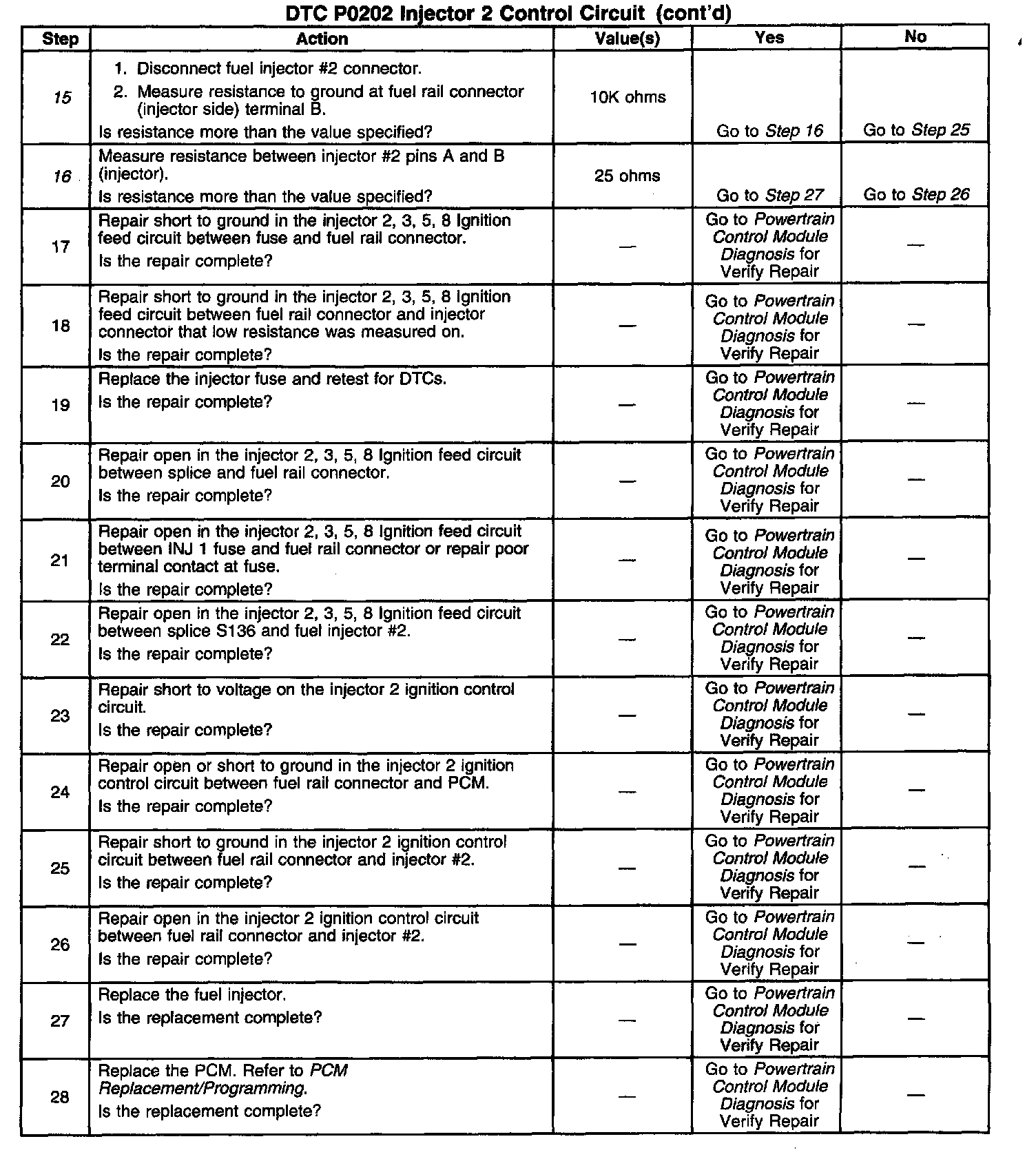 2. If DTCs P0203, P0205 and P0208 are also set, power must be disabled to injectors 2, 3, 5 and 8.