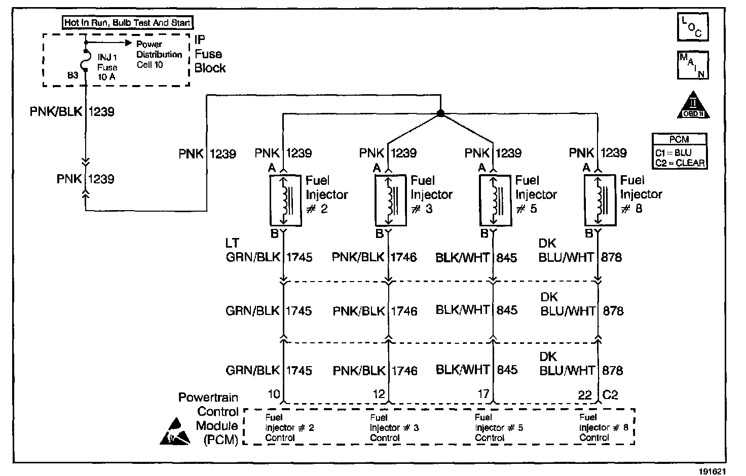 4. Checking for short to ground in the injector 2, 3, 5, 8 Ignition feed circuit between fuse and fuel rail connector.