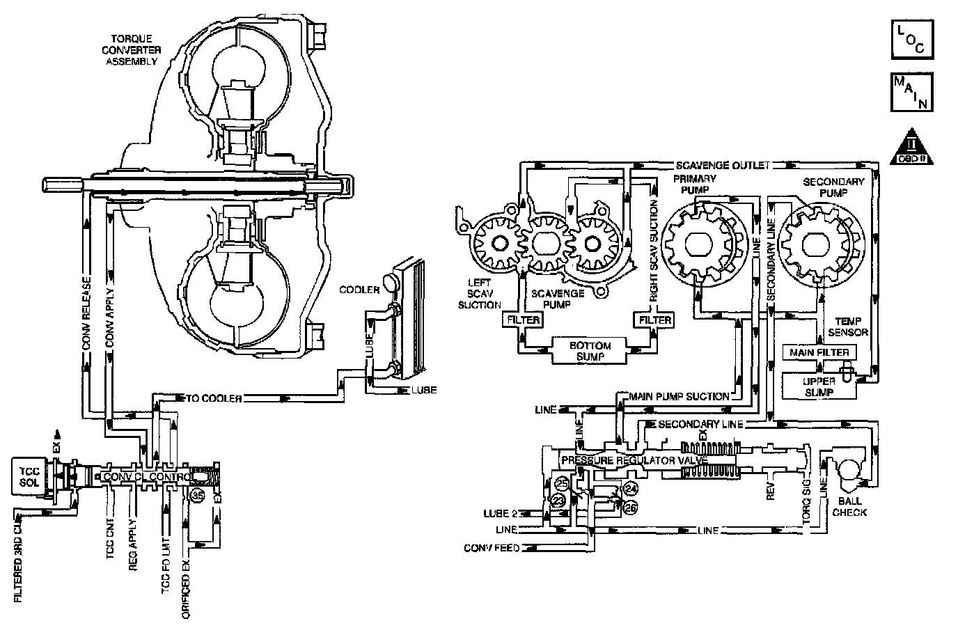 ^ Low Line Pressure: Inspect cooler lines for any crimps or restrictions. Refer to Line Pressure Check Procedure.