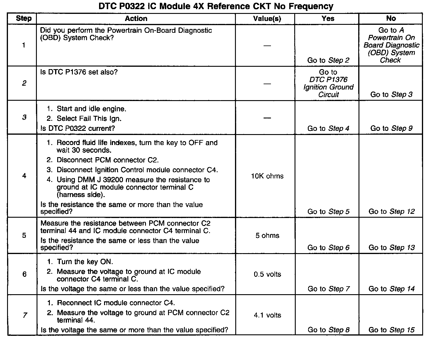 2. Check to see if DTC P1376 is set because a REF LO problem can cause other ignition problems.