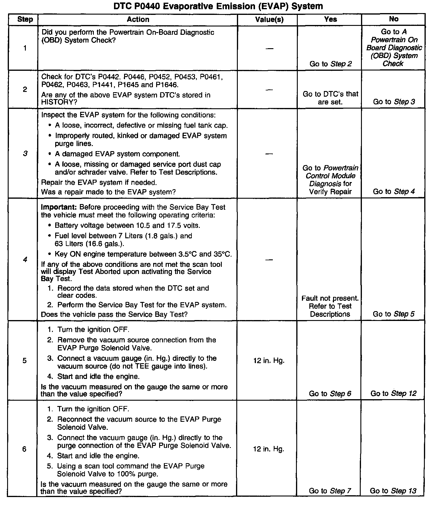 If the Service Bay Test can not be run, proceed to Step 5. If a fault is not currently present the diagnostic table steps will return you to Step 3.