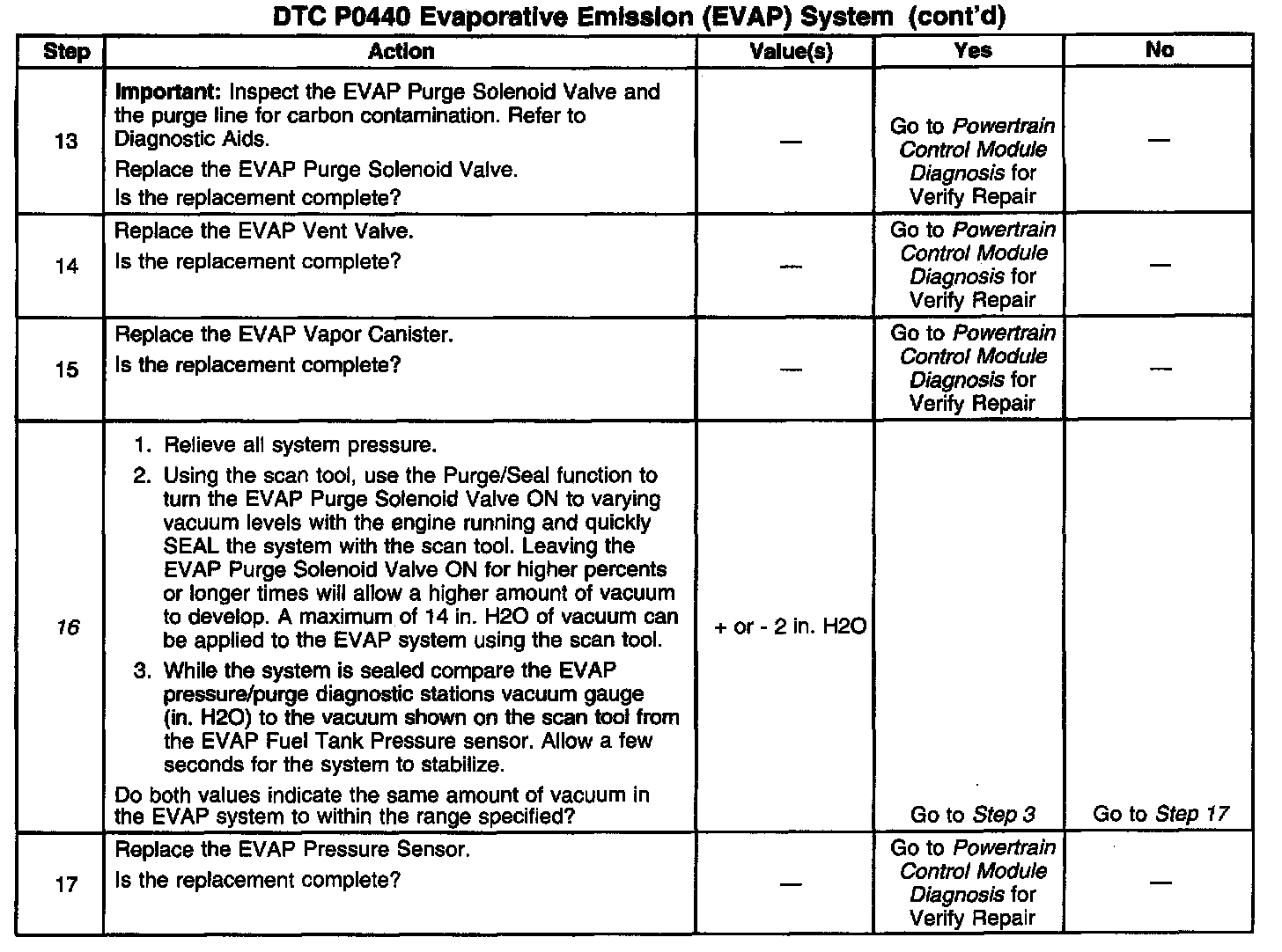 16. An EVAP Pressure sensor that does not correctly respond to vacuum (or pressure) will cause this DTC to set.