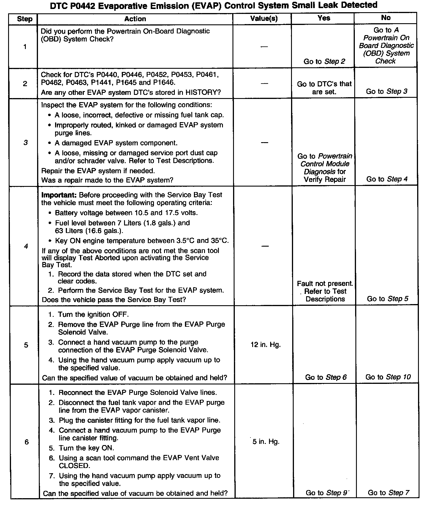 Important: This DTC does NOT report a first tailed test. A first fail of this DTC will have a scan tool status as Not Run. Use the scan tool data display parameter of EVAP TEST RESULT to determine if this DTC has failed or passed for THIS ignition cycle.