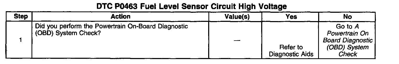 Important: Fuel level is used to determine EVAP system diagnosis. Always diagnose the fuel level sensor before any other EVAP system components or DTC's.