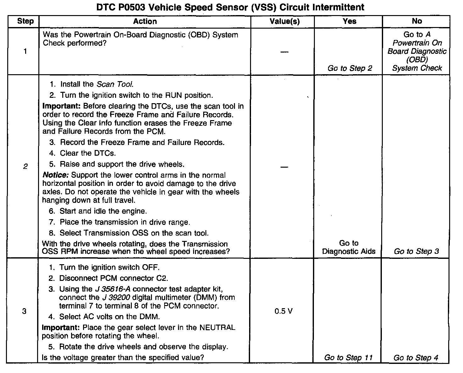 ^ The PCM stores DTC P0503 in PCM history during the second consecutive trip in which the Conditions for Setting the DTC are met.