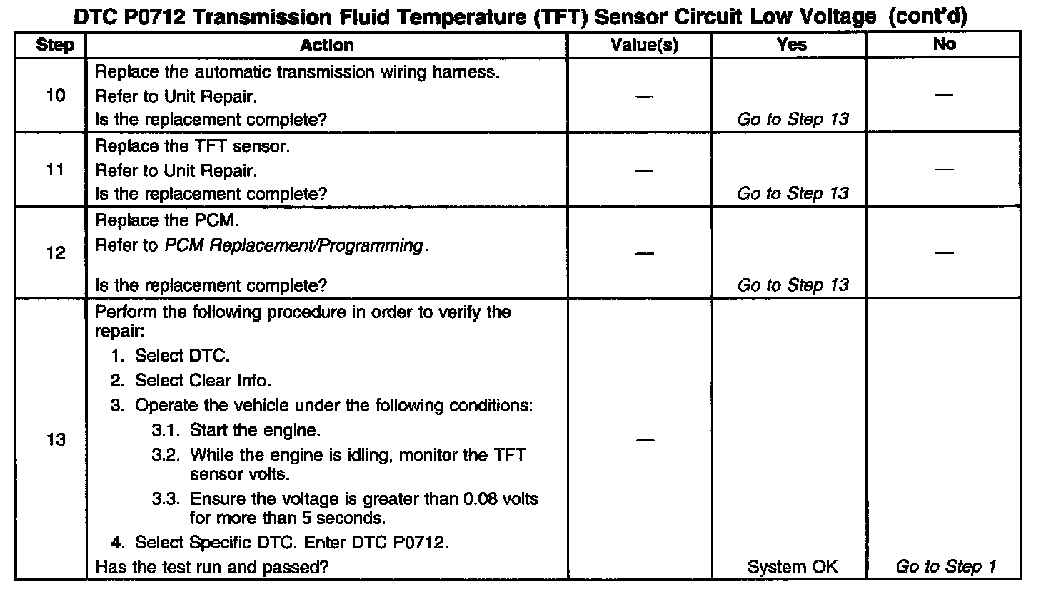 ^ The PCM stores DTC P0712 in PCM history.