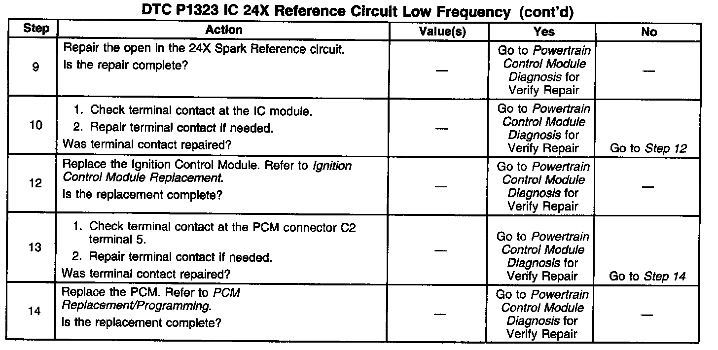2. Check to see if DTC P1376 is set because a REF LO problem can cause other ignition problems.