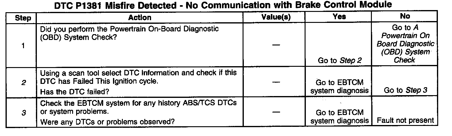 This diagnostic test checks for the absence of serial data from the EBTCM. This data is needed for misfire diagnosis (DTC P0300).