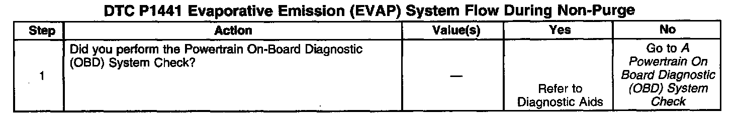 Important: An accurate indication of fuel level is required for the PCM to properly Pass or Fail this DTC. Always diagnose fuel level sensor DTC's before performing this DTC's diagnostic table. Always inspect for fuel level sensor DTC's stored as History.
