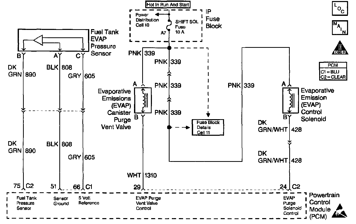 The PCM tests the EVAP system for the following conditions: