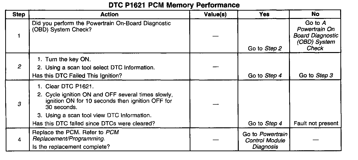 2. If DTC P1621 is set current, the PCM cannot find another location to store the data, so the PCM must be replaced.
