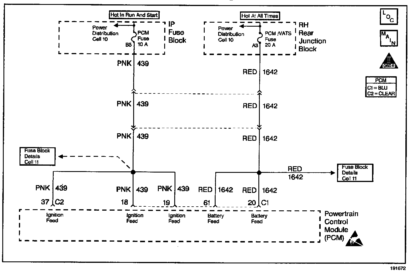 ^ Ignition 1 voltage (PCM connector C1 terminal 19) at least 5.5 volts.