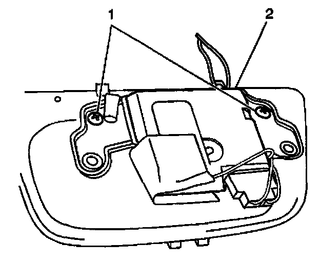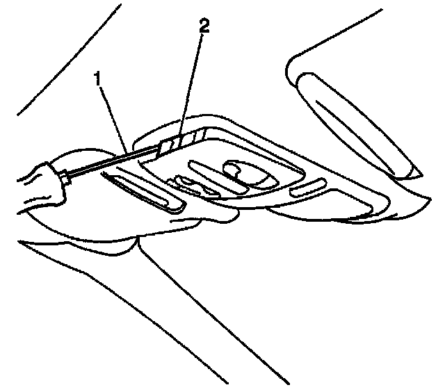 4. Remove the screws (1) from the UGDO (2) to overhead console.