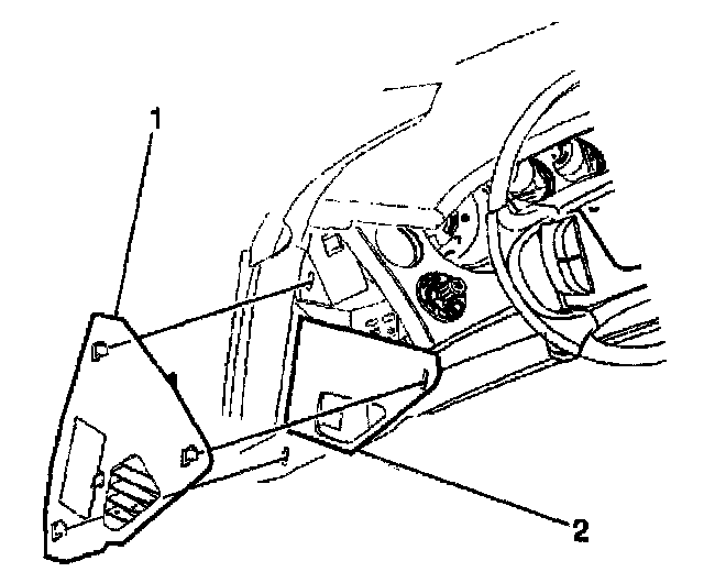 Remove the left side trim panel (1) from the instrument panel assembly (2) by pulling rearward.