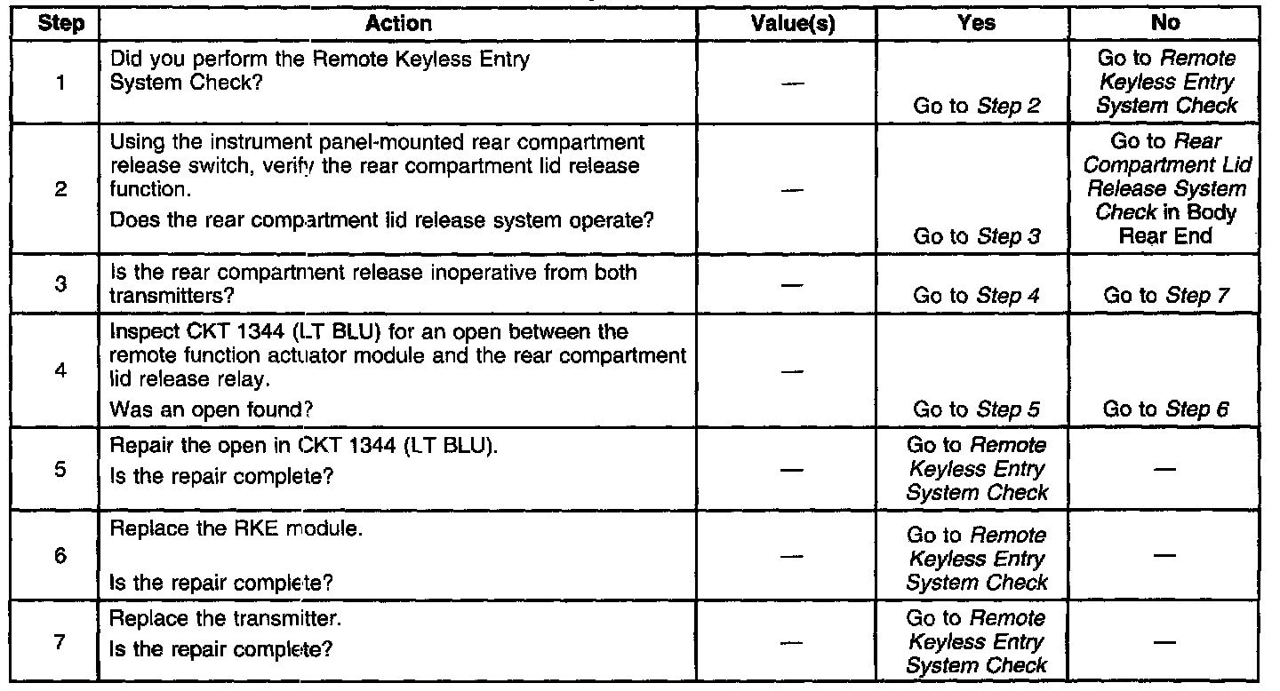 Rear Release Inoperative With Transmitter: