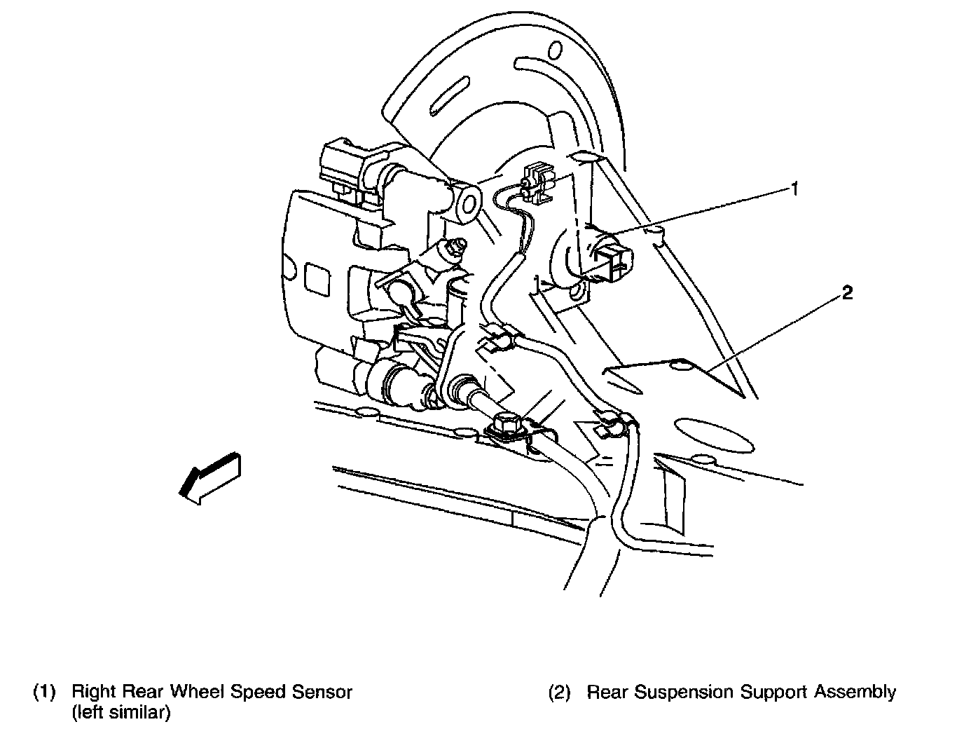 RH Rear Wheel Speed Sensor: Behind the right rear wheel, on the back of the hub