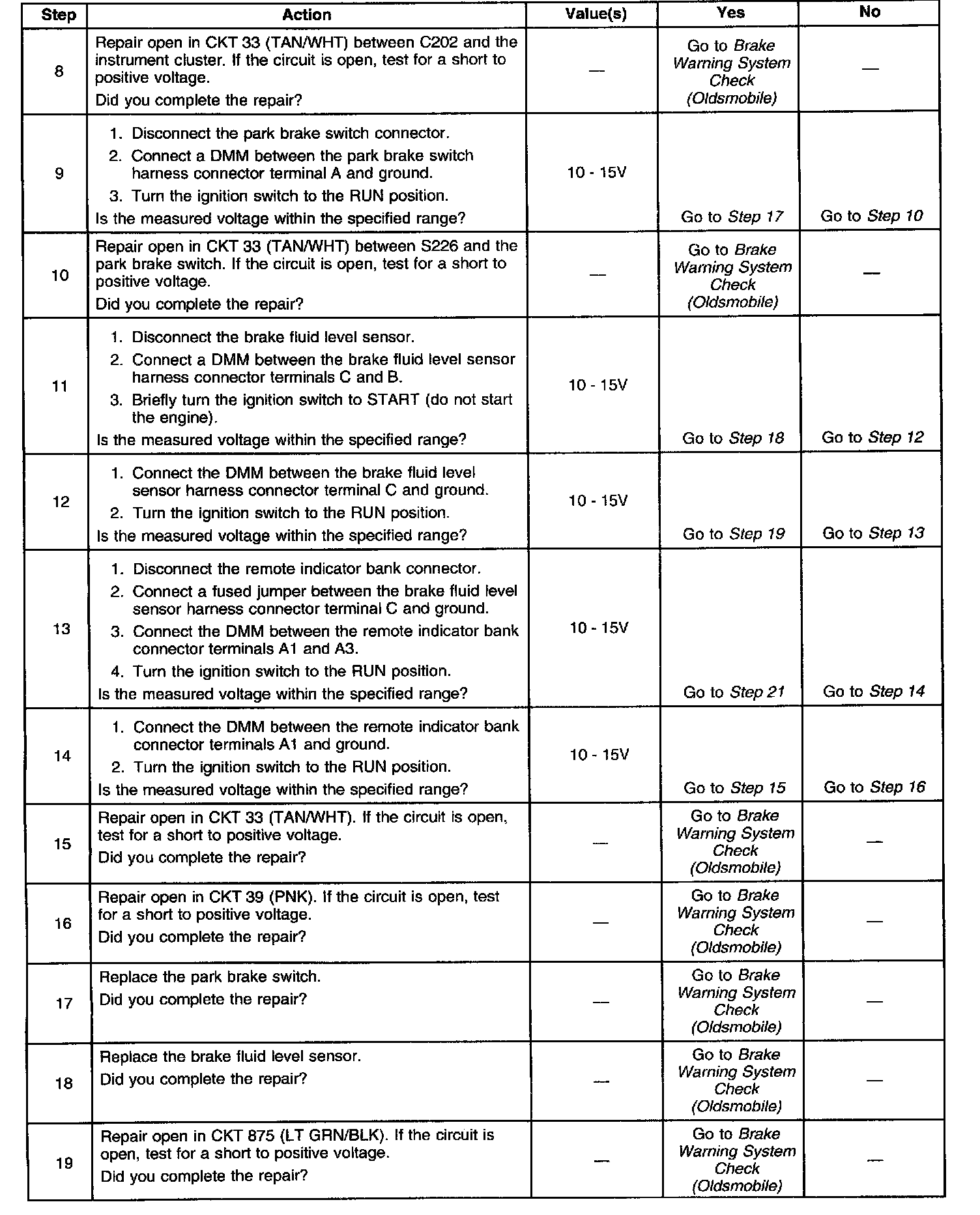 Brake Warning Indicator Inoperative