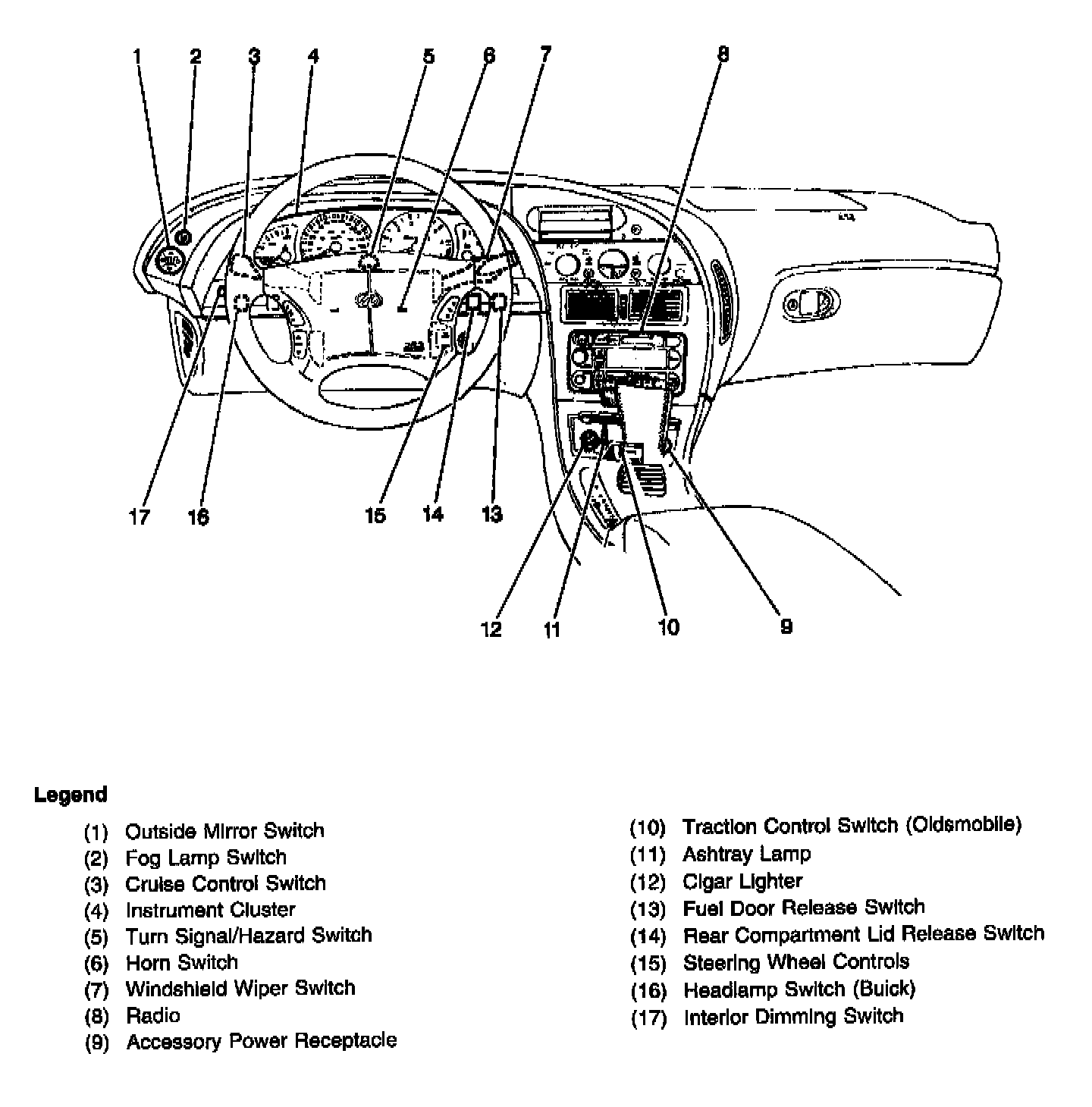 Passenger Compartment, Front Of The Instrument Panel (IP) (Oldsmobile Shown, Buick Similar):