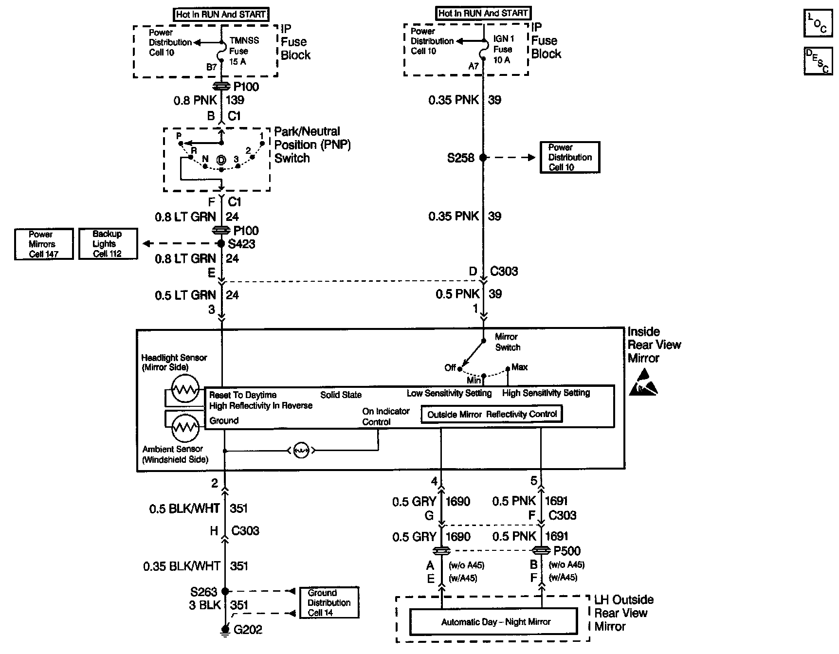 Automatic Day-Night Mirrors Schematics (Oldsmobile):