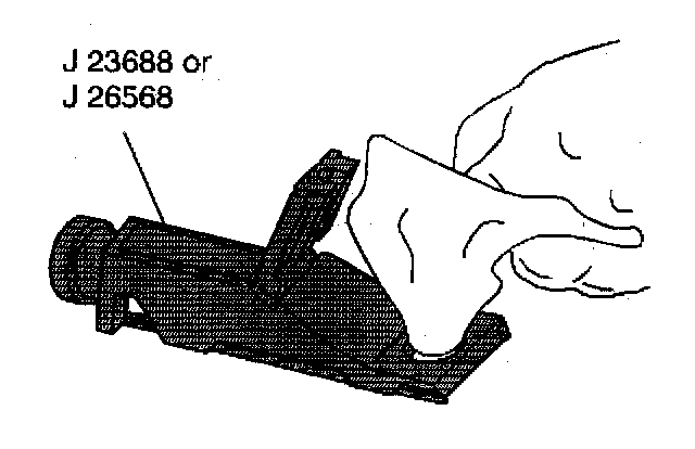 1. Release the tip of the pump from the housing of the J 23688 or the J 26568.