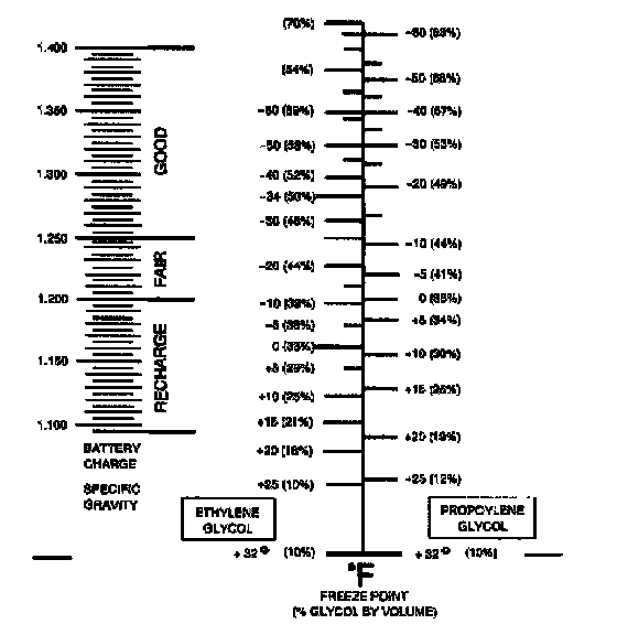 - The coolant protection reading is at the point where the dividing line between light and dark crosses the scale. Antifreeze protection is the scale on the right.