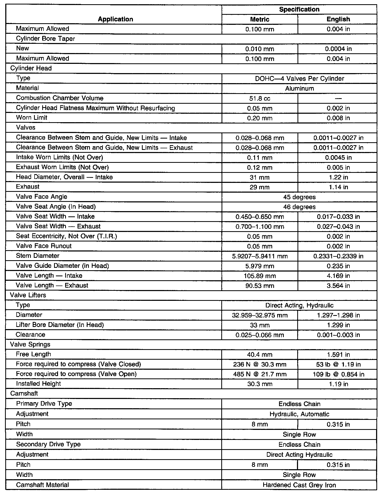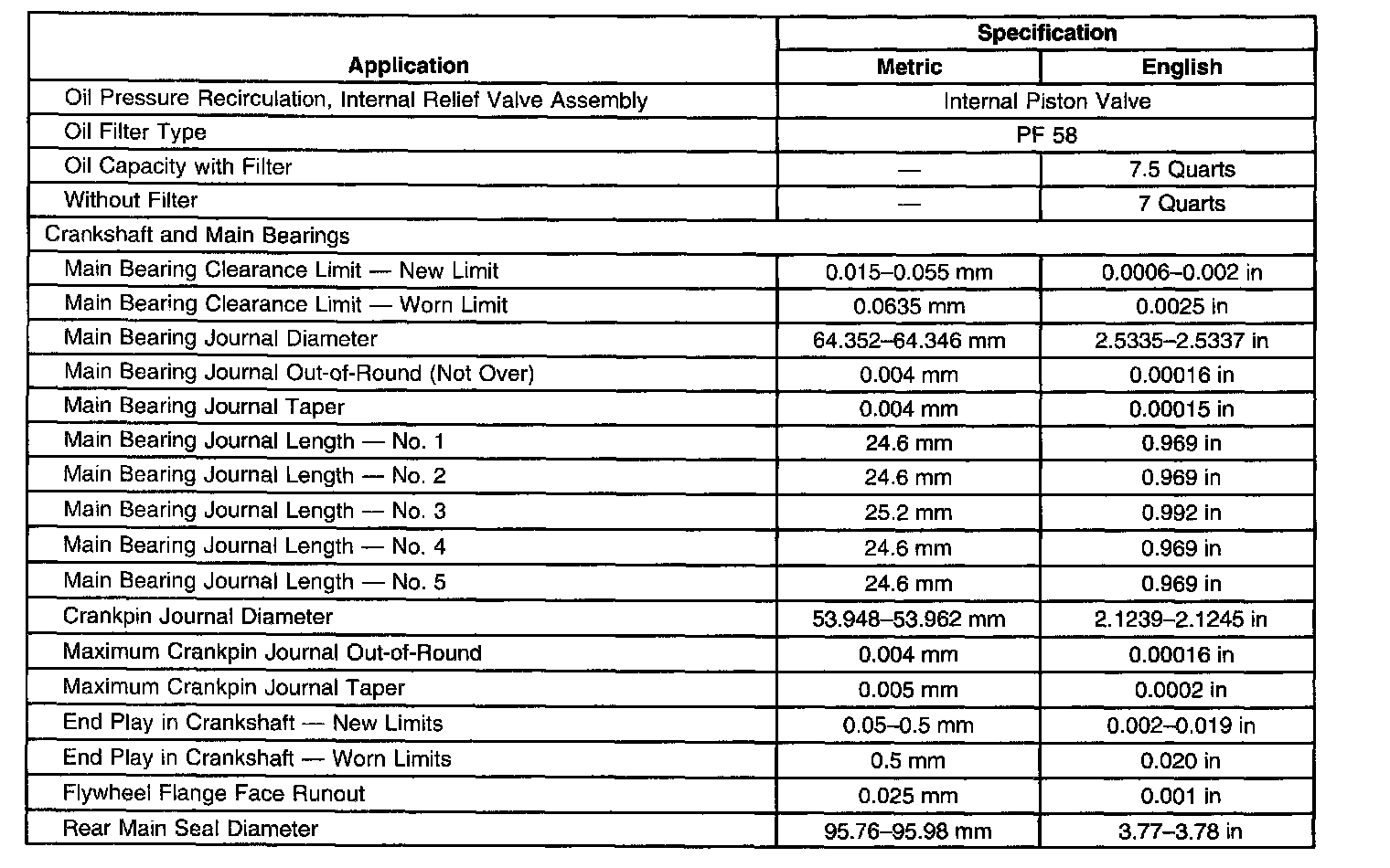 Engine Mechanical Specifications