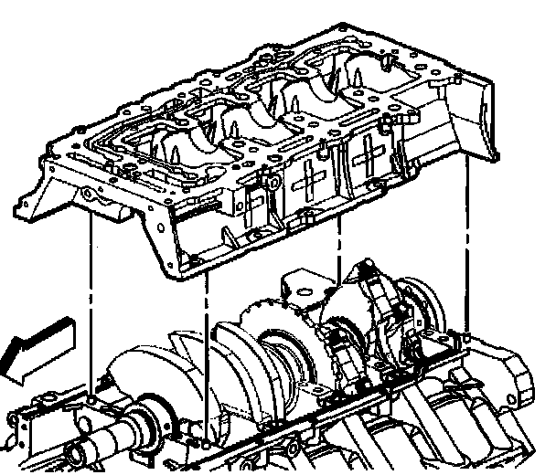 6. Inspect the upper-to-lower crankcase joint in order to make sure the lower crankcase is fully seated on the cylinder block.