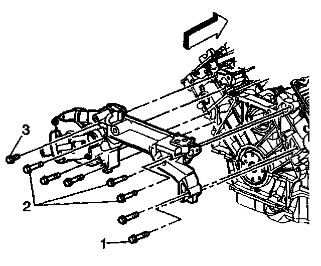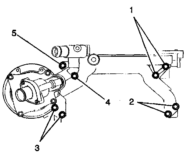 3. Place the water crossover in position and hand start the bolts identified (1-3) to hold the crossover in place.
