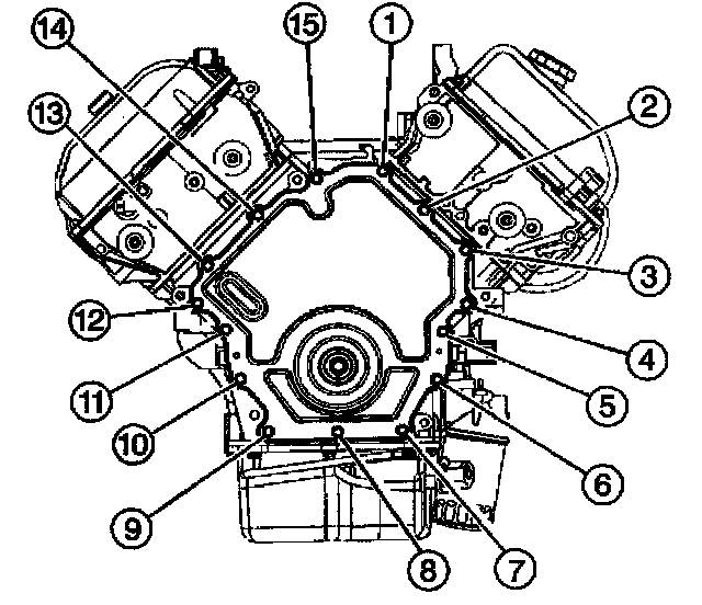 5. Tighten the front cover retaining bolts in the sequence shown.