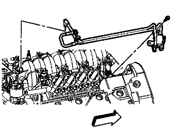 4. Connect the fuel rail ground wire at the front of the rear (right) cylinder head.