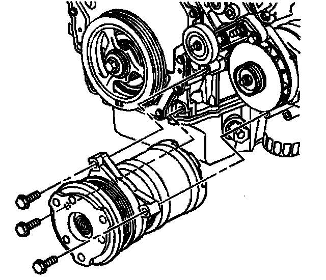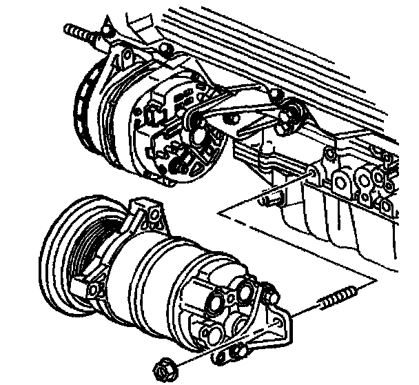 5. Install the air conditioning compressor mounting bolts and nut finger tight.