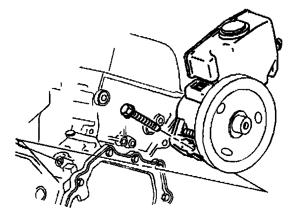 Important: Ensure the power steering pump is as far back toward the rear of the engine as possible before tightening the bolt.