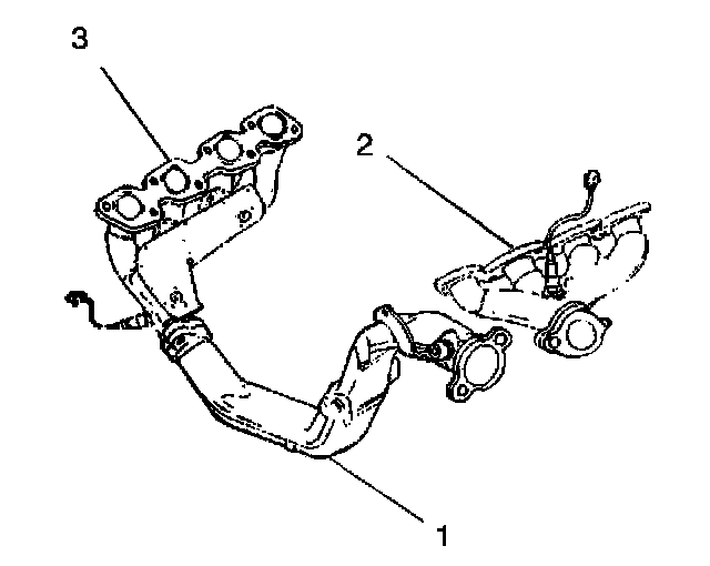 2. Remove the two bolts at the left side exhaust manifold (3).
