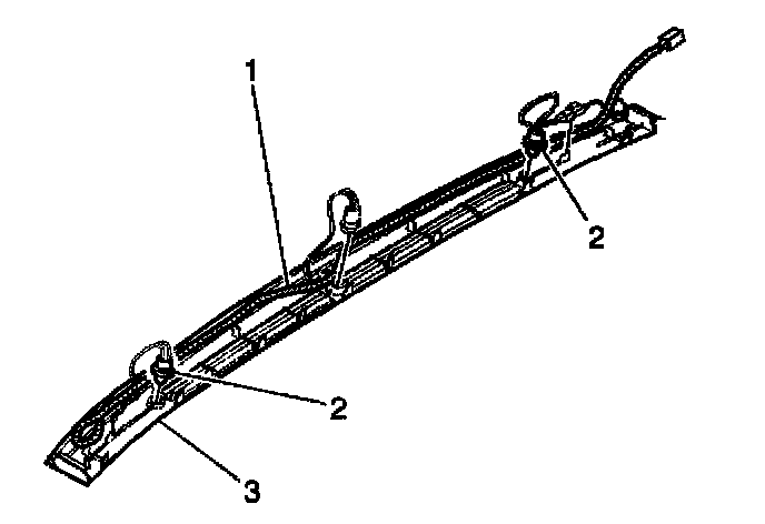 The sun load sensor is a light-sensitive photo-diode. The sun load sensor monitors the heat load of the sun on the vehicle. The sensors (2) are located on top of the instrument panel, on either side of the defroster grill (3) where sunlight may reach the sensors.