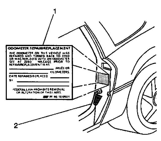 ^ Attach an odometer/mileage label to the left front door frame.