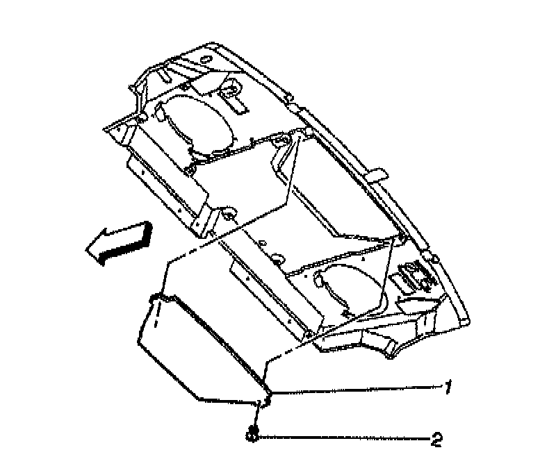 REMOVAL PROCEDURE1. From the inside of the rear compartment, remove the 2 push-in retainers (2) from the CHMSL access cover (1).