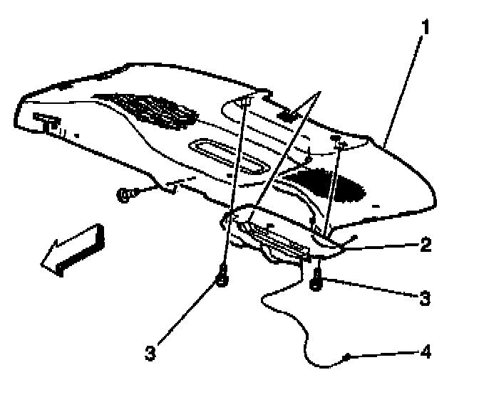 3. Remove the screws (3) that retain the CHMSL to the rear shelf (1).