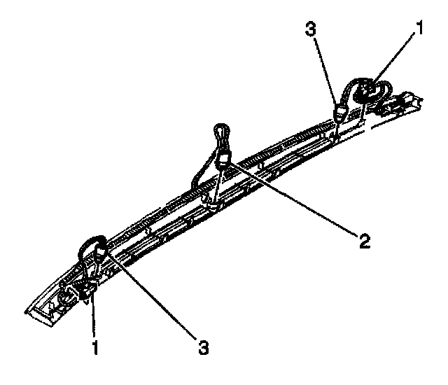 4. Disconnect the sunload sensors (3) from the defroster grille by turning a quarter turn. Remove the sensors from the defroster grille.