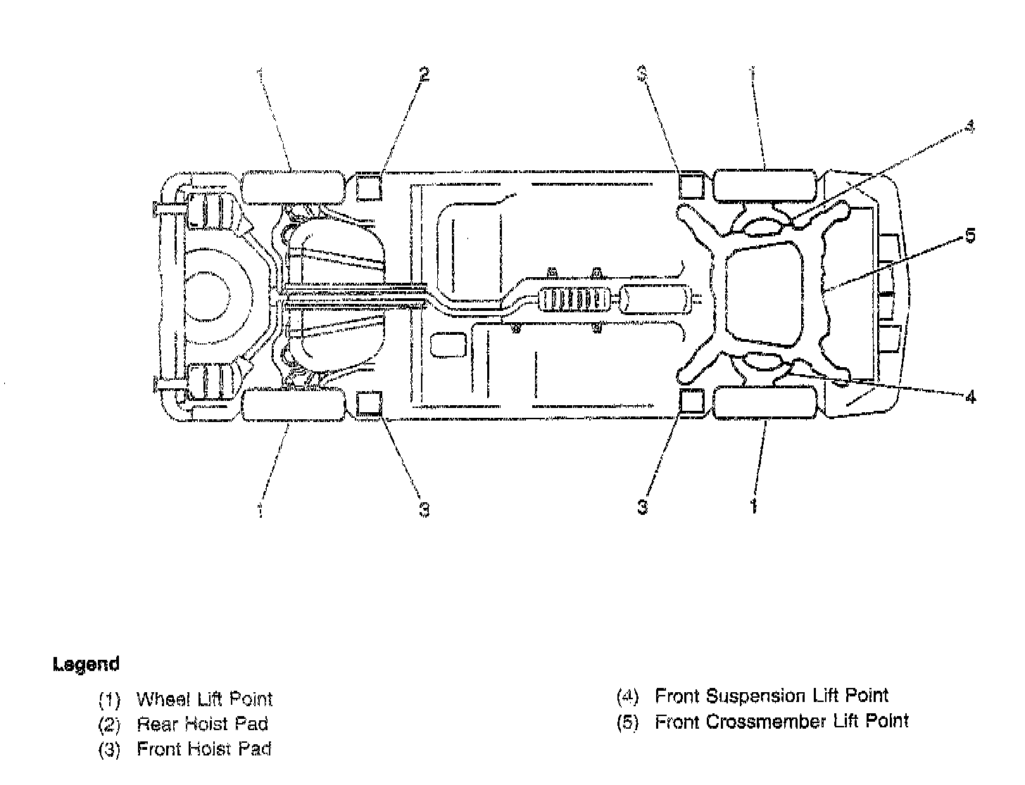 Caution: To help avoid personal injury, when a vehicle is on a hoist, provide additional support for the vehicle at the opposite end from which you are removing components. The additional support will reduce the possibility of the vehicle falling off the hoist. When you are removing major components from the vehicle while the vehicle is on a hoist, chain the vehicle frame to the hoist pads at the same end from which you are removing the major components to prevent tip-off. If you fail to follow these precautionary measures, vehicle damage, serious personal injury, or death may result.