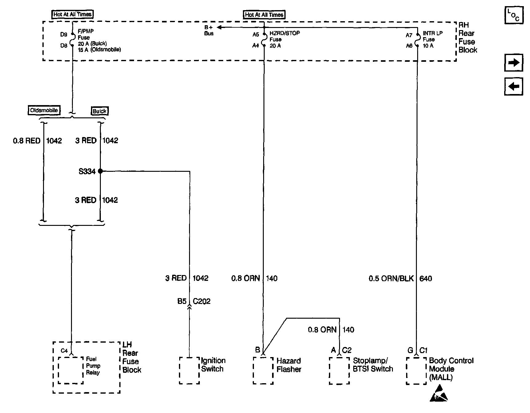 Power Distribution Schematics: F/PMP Fuse, HZRD/STOP Fuse, And INTR LP Fuse:
