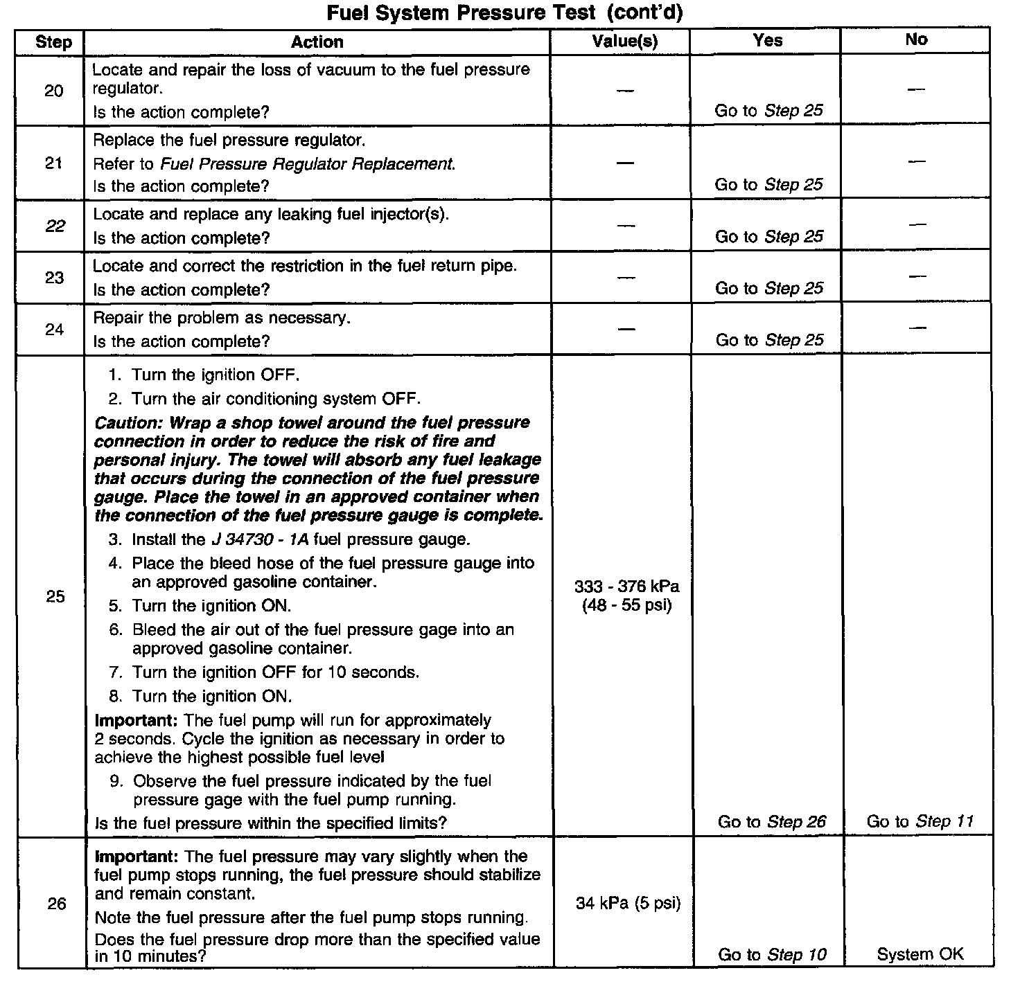 13. This test determines if the high fuel pressure is due to a restricted fuel return pipe or if the high fuel pressure is due to a faulty fuel pressure regulator.