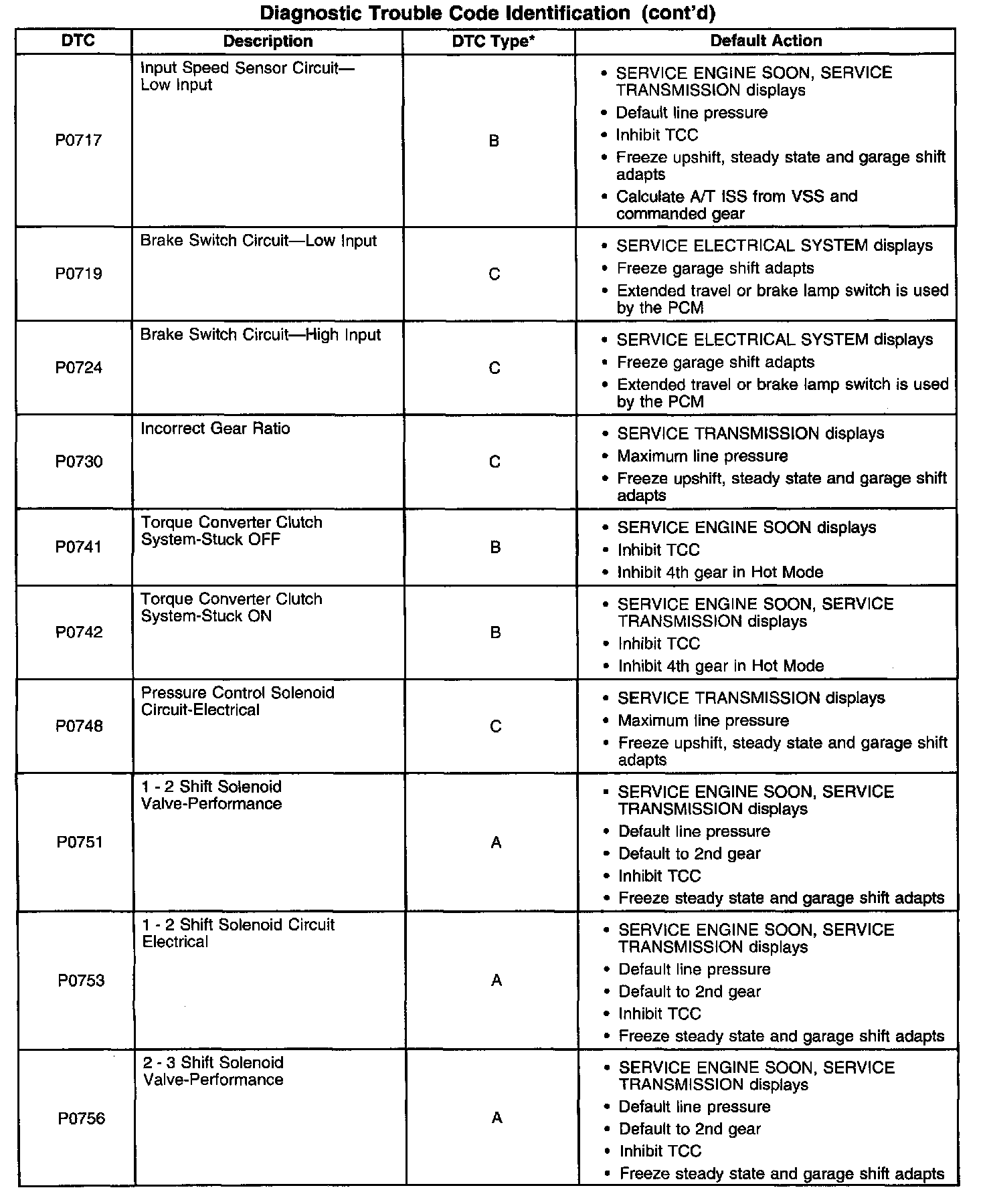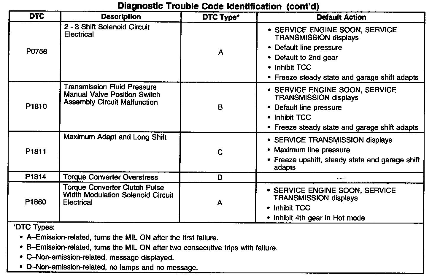 Transmission Controls DTC / Symptom Relationship