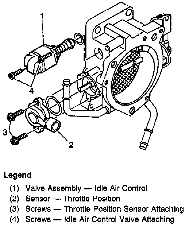 The Throttle Position (TP) sensor and Idle Air Control (IAC) valve are mounted on the throttle body. The TP sensor and minimum air stop are not adjustable.