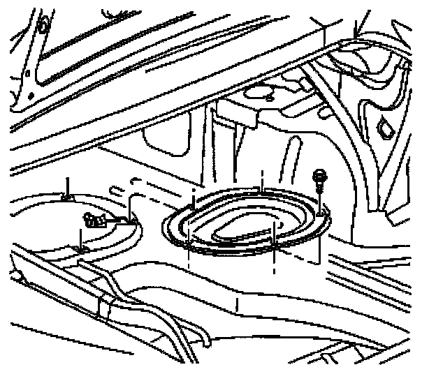 Caution: Remove the rear compartment floor trim to provide technician contact with the vehicle's metal surfaces. Failure to remove the rear compartment floor trim may cause a static electricity discharge to ignite any fuel vapor resulting in personal injury and vehicle damage.