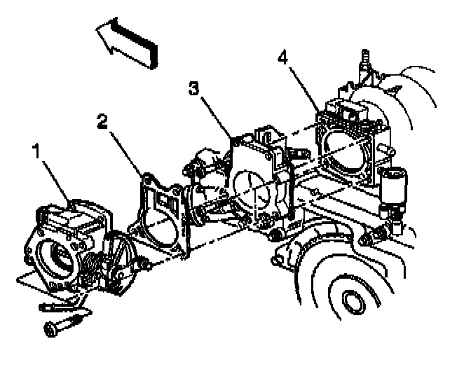 4. Install throttle body spacer (3).