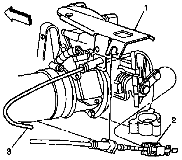 2. Remove the accelerator cable (3) from the accelerator controls cable bracket (1).
