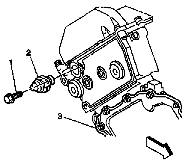 2. Install the cam sensor (2) and retaining bolt (1)
