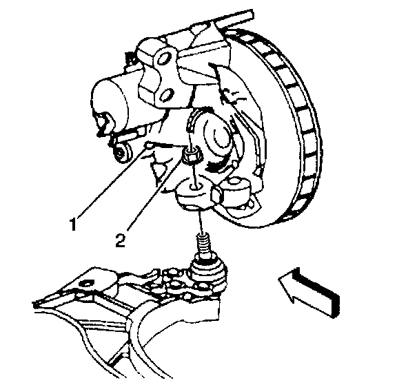 3. Remove the wheel bearing and hub. Refer to Wheel Bearing/Hub Replacement- Front.