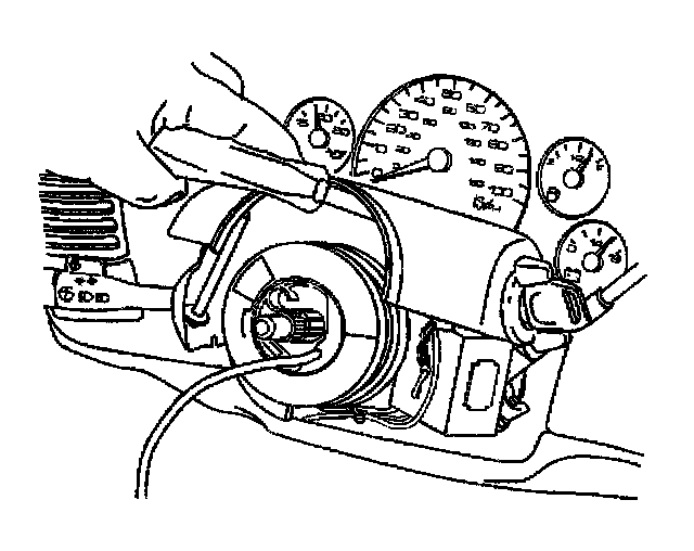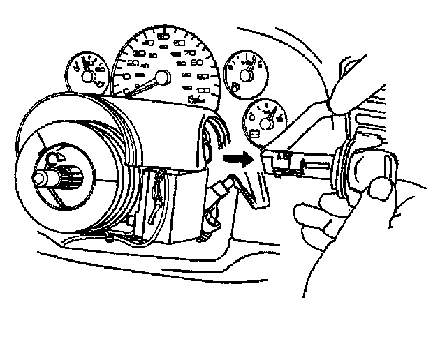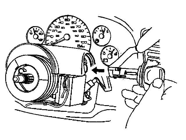 14. Remove the ignition lock cylinder from the lock module assembly by pulling the ignition lock cylinder away from the steering column.