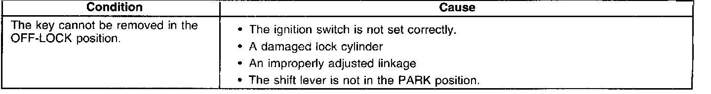 Key Cannot Be Removed In the Off Lock Position - Tilt Column